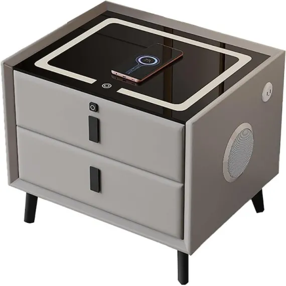 Noptierele inteligente îmbină eleganța și funcționalitatea, oferind atât spațiu generos de depozitare, cât și caracteristici tehnice avansate. Suprafața este fabricată din sticlă securizată 3C, cunoscută pentru durabilitatea sa, fiind rezistentă la zgârieturi și uzură, dar și ușor de curățat. Designul sertarelor glisante oferă acces rapid și simplu la obiectele depozitate, iar capacitatea celor două sertare spațioase asigură organizarea perfectă a lucrurilor personale esențiale.Blatul mesei este suficient de mare pentru a expune obiecte decorative, adăugând un plus de stil camerei tale.
